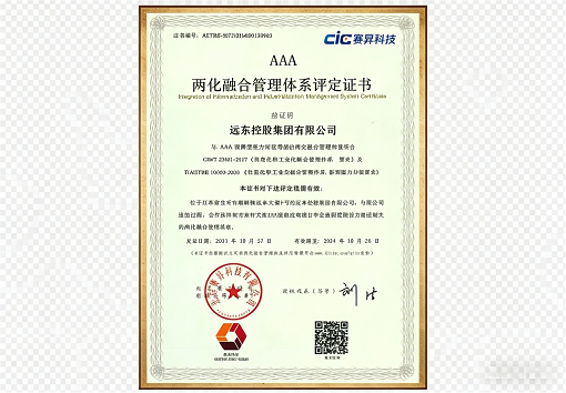 • AAA Certificate of Integration of Informatization and Indust...
